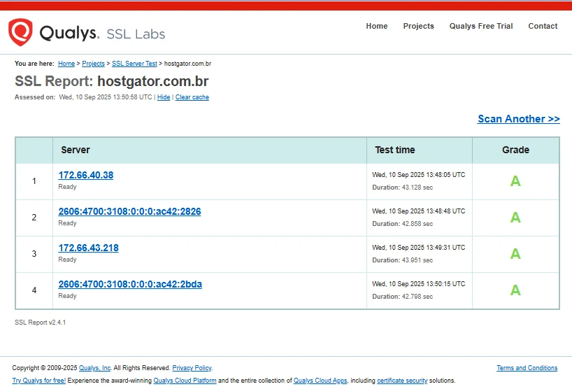Cualquier persona puede verificar si un sitio web tiene el certificado SSL activo o no. Para ello, simplemente use Qualys SSL Labs e introduzca el nombre de la dirección electrónica en el campo Hostname. Entonces, la plataforma comprobará toda la documentación de seguridad del sitio y lo clasificará entre A, seguro, y F, cuando hay fallos de seguridad;